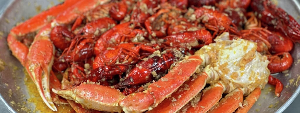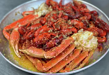 Succulent Snow Crab Legs boiled and stir fried with your choice of sauce. Mild or Spicy.